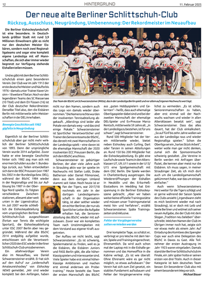 In der aktuellen EISHOCKEYNEWS ist auf der Seite 12 ein ganzseitiger Bericht
