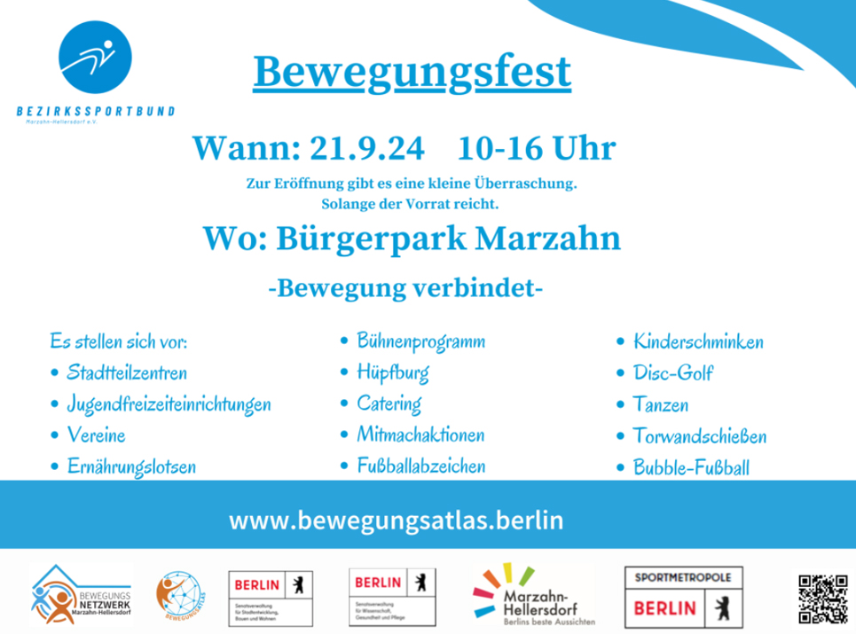 am 21.09.2024 tritt unsere Tanzabteilung mit allen Gruppen beim Bewegungsfest im Bürgerpark Marzahn auf.