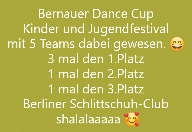 Wir sind vom Berliner Schlittschuh-Club e.V. Abteilung Tanzen ein gemeinütziger Verein, bei uns kann man ab 2 Jahren mit viel Spaß anfangen zu tanzen.