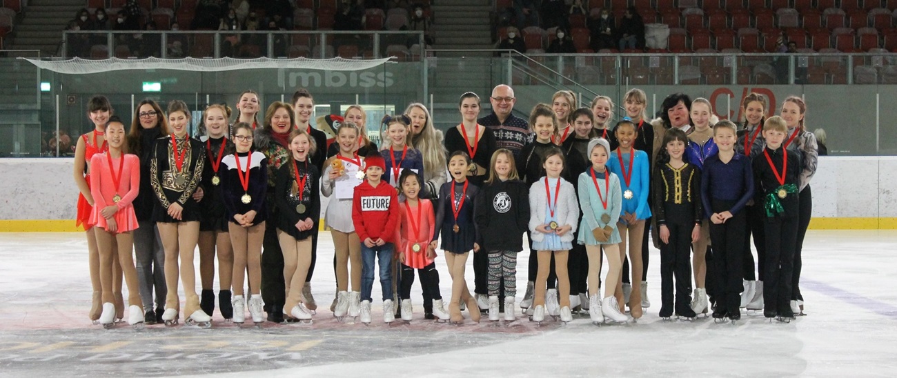 Nach langem hin und her…und der Ungewissheit unsere allzu beliebte Vereinsmeisterschaft stattfinden lassen zu dürfen. Waren wir umso glücklicher, diese mit unserem kleinen und großen Eiskunstläufer*innen erleben zu dürfen. In der Eissporthalle P9 in der Glockenturmstraße wurde wieder gezeigt was diese und die letzten Saisons beim Club- und Zusatztraining alles zu erlernen möglich ist. Von unseren Kleinsten (4 Jahre) bis hin zu unseren Adults (Erwachsenen) wurde in schicken, glitzernden Kleidern und schönen Outfits, die einstudierten Gruppen und Einzelküren vor dem tobenden Applaus des Publikums vorgeführt. Es war wieder eine super Stimmung, welche in der Eishalle lag. Jeder Teilnehmer hatte ein Lächeln im Gesicht bei der Übergabe der Medaillen und Urkunden. Es ist immer wieder schön zu sehen, wie sehr alle diesen Sport lieben und lieben gelernt haben. Die Fortschritte der Kinder und die Freude in ihren Gesichtern zu sehen ist einfach unbeschreiblich.