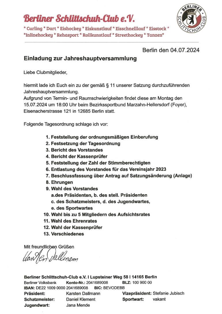 Einladung Jahreshauptversammlung