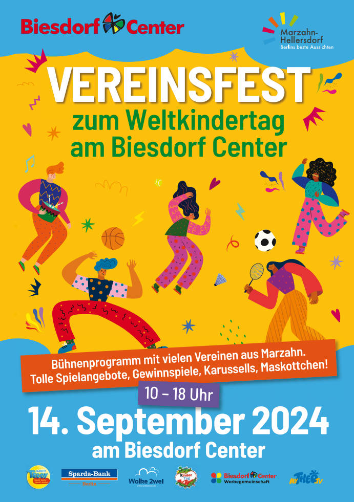 am 14.09.2024 tritt unsere Tanzabteilung beim diesjährigem "Vereinsfest" zum Weltkindertag im Biesdorf-Center auf.